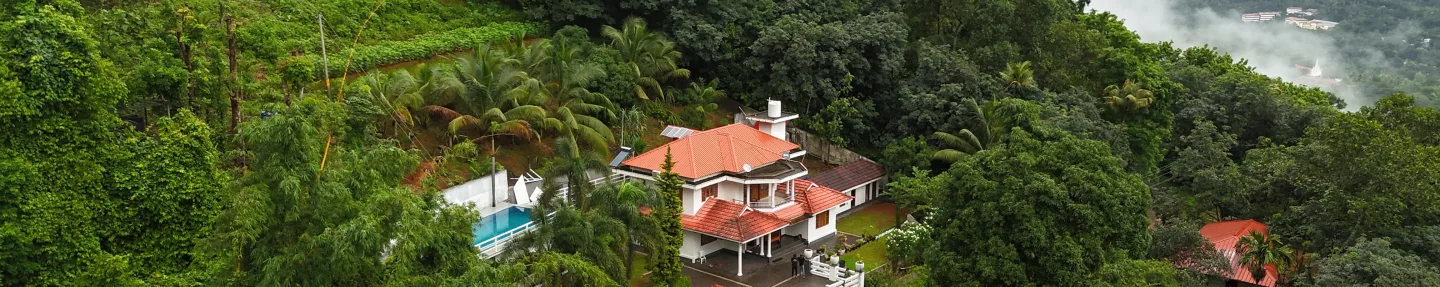 Our drone captures the heart of Hilltopstay in a way words alone can’t describe — the tiled roof glowing under the Kerala sun, the gentle slopes of the surrounding hills, and the lush green plantation that wraps our home in a blanket of calm.